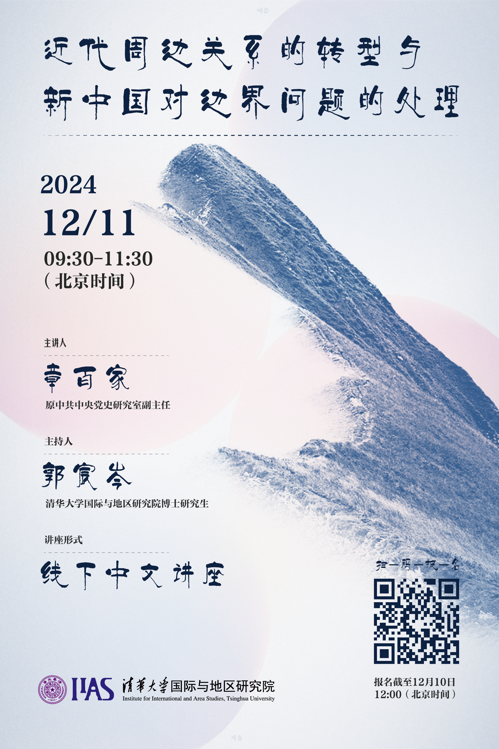 On the morning of December 11, 2024, the Independent Lecture "The Transformation of Modern Neighborhood Relations and New China's Approach to Border Issues" organized by the Institute for International and Area Studies (IIAS) of Tsinghua University was held offline. The lecturer was Mr. Zhang Baijia, historian and former deputy director of the Party History Research Office of the CPC Central C...