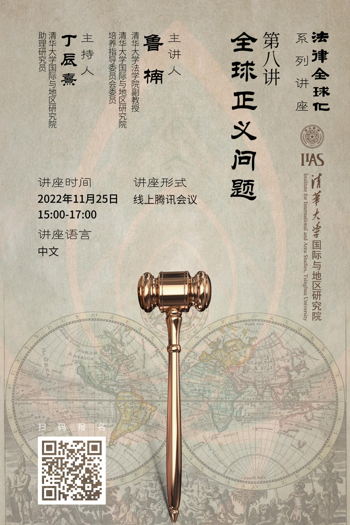 Lecture 8 of the Globalization of Law Lecture Series, themed “Global Justice,” offered by the Institute for International and Area Studies (IIAS) of Tsinghua University in the fall semester 2022-23, was delivered online on the afternoon of November 25, 2022. The lecture was presented by Lu Nan, associate professor of Tsinghua University Law School and member of the Teaching Committee of the IIAS, and moderated by Ding Chenxi, assistant professor at the IIAS. Scholars and students from universities in both China and beyond, including researchers and doctoral students of the IIAS, as well as other people interested in related topics attended the online lecture.
