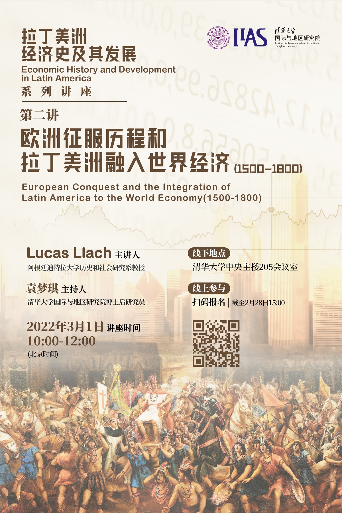 • On March 1, 2022, the Institute for International and Area Studies of Tsinghua University (IIAS) hosted the second lecture entitled “European Conquest and Integration of Latin America to the World Economy (1500-1800)” of Economic History and Development in Latin America lecture series. The lecture was delivered by Professor Lucas Llach from the Department of History and Social Studies at the University of Ditra, Argentina and presided over by Yuan Mengqi, a postdoctoral researcher at the IIAS.