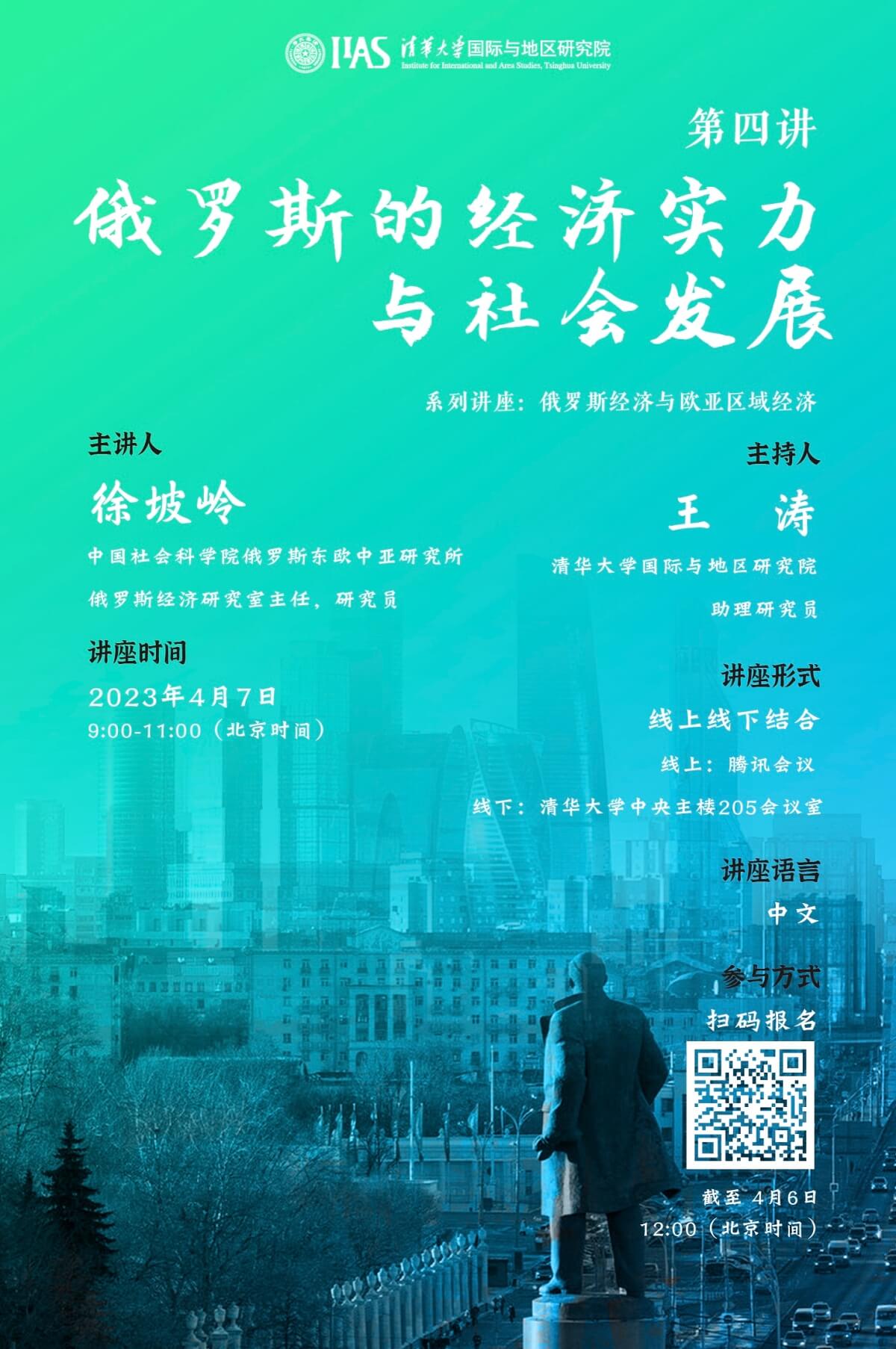 • On the morning of April 7, 2023, the Institute for International and Area Studies (IIAS) of Tsinghua University hosted the fourth lecture of the “Russian Economy and Eurasian Economy” series both online and offline. Themed “Russia’s Economic Strength and Social Development,” the lecture was delivered by Xu Poling, Research Fellow and Director of the Department of Russian Economy, Institute of Russian, Eastern European & Central Asian Studies, Chinese Academy of Social Sciences (CASS). Present at the lecture were IIAS assistant research fellows and doctoral students, and scholars and students from other departments of Tsinghua University, Shanghai University of Finance and Economics, Shandong University, The Export-Import Bank of China, etc.