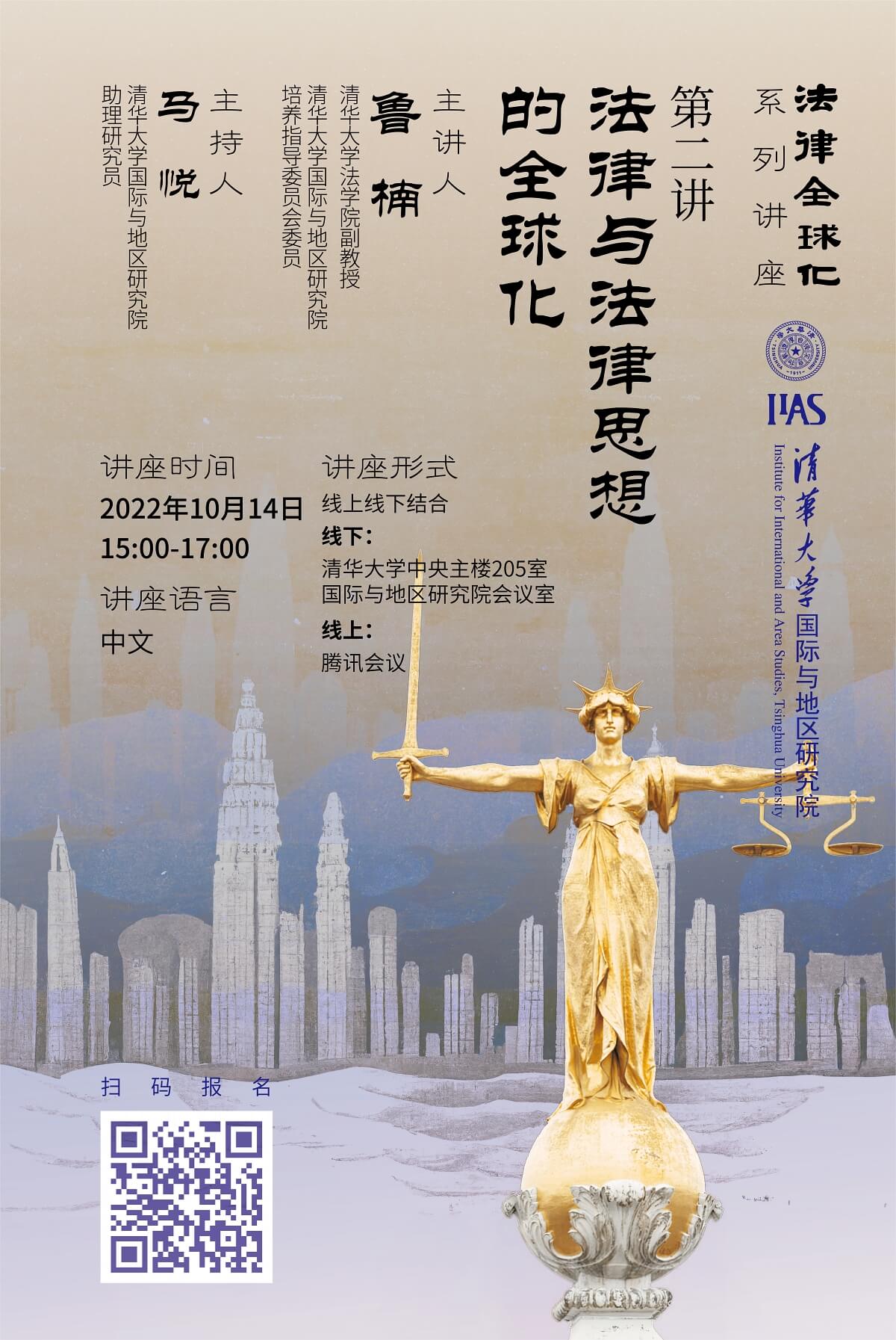 In the afternoon of October 14, 2022, the second lecture of Globalization of Law Lecture Series of the autumn semester of 2022-2023 academic year of the IIAS was held, with the theme of “globalization of law and legal thought”. The lecture was hosted by Lu Nan, an associate professor of Tsinghua University Law School and a member of the Teaching Committee of the IIAS, and Ma Yue, an assistant professor at the IIAS. Many researchers and doctoral students from the regional research institutes, scholars and students from universities at home and abroad, and people interested in relevant topics attended online and offline lectures.