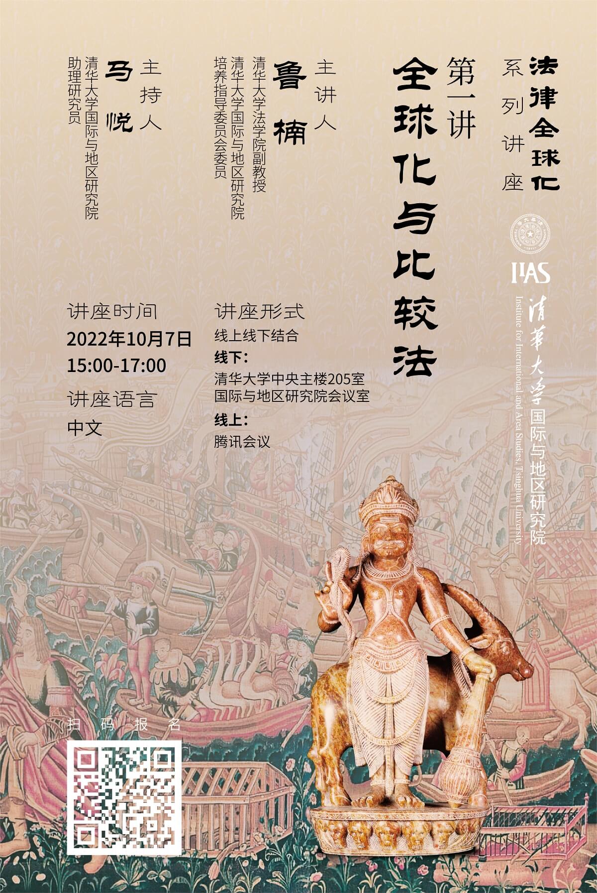 “Globalization and the Comparative Law”, the first lecture of the Globalization of Law Lecture Series offered by the Institute for International and Area Studies (IIAS) of Tsinghua University in the fall semester 2022-23, was delivered on the afternoon of October 7, 2022 in Classroom 205, the Central Building. The lecture was presented by Lu Nan, associate professor of Tsinghua University Law School and member of the Teaching Committee of the IIAS, and moderated by Ma Yue, assistant professor at the IIAS. Scholars and students from universities across the world, including researchers and doctoral students of the IIAS, as well as other people interested in related topics attended the lecture in person or online.