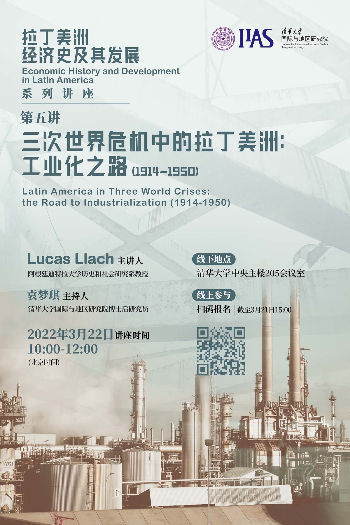 • On March 22, 2022, the Institute for International and Area Studies of Tsinghua University (IIAS) invited Professor Lucas Llach from the Department of History and Social Studies at the University of Ditra, Argentina, to deliver the fifth lecture entitled “Latin America in Three World Crises: the Road to Industrialization (1914-1950) ” of Economic History and Development in Latin America lecture series. The lecture was presided over by Yuan Mengqi, a postdoctoral researcher at the IIAS.