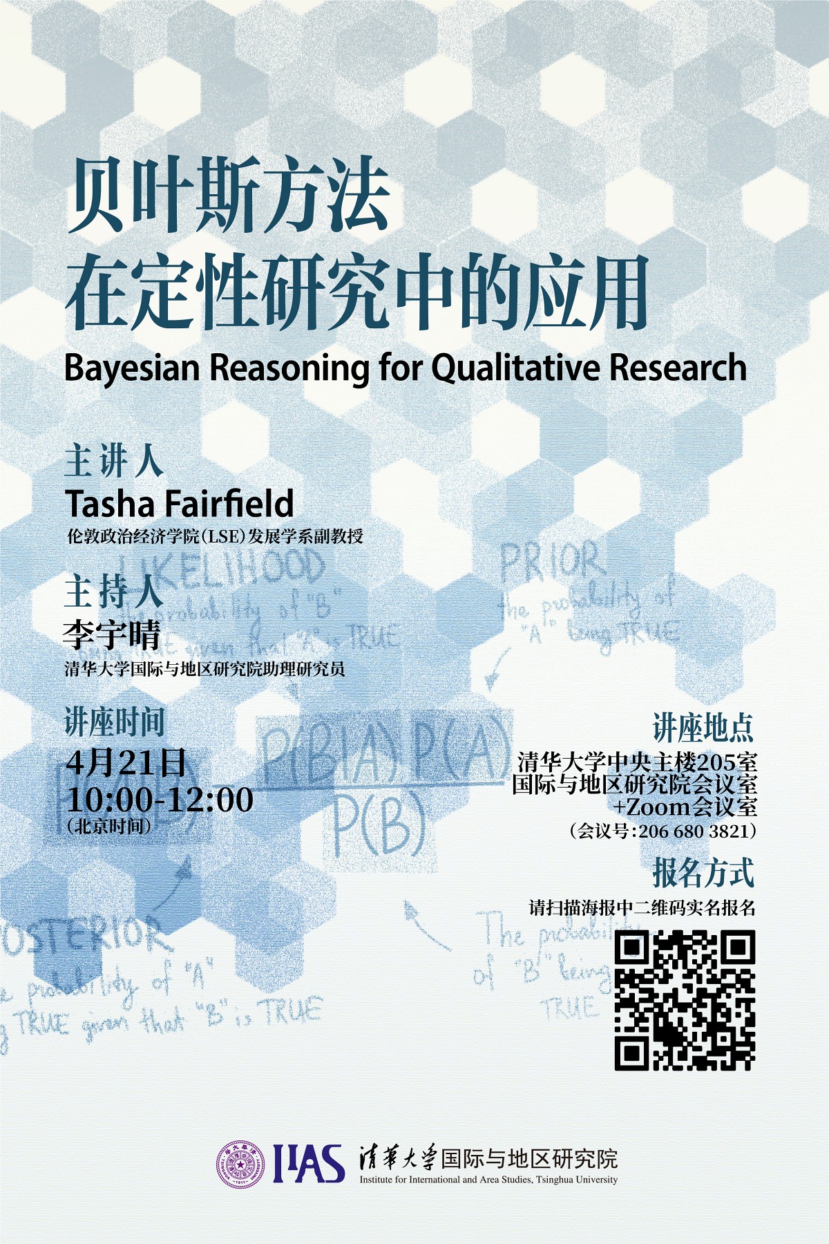 • On April 21, 2022, the Southeast Asian Studies research group of the Institute for International and Area Studies (IIAS) of Tsinghua University hosted an online lecture entitled “Bayesian Reasoning for Qualitative Research”. The lecture was delivered by Tasha Fairfield, Associate Professor of International Development at the London School of Economics and Political Science (LSE) and presided over by Dr. Li Yuqing, an Associate Professor at the IIAS. Faculty members and students from Tsinghua university, the University of Michigan, and other universities and research institutes at home and abroad attended the lecture.