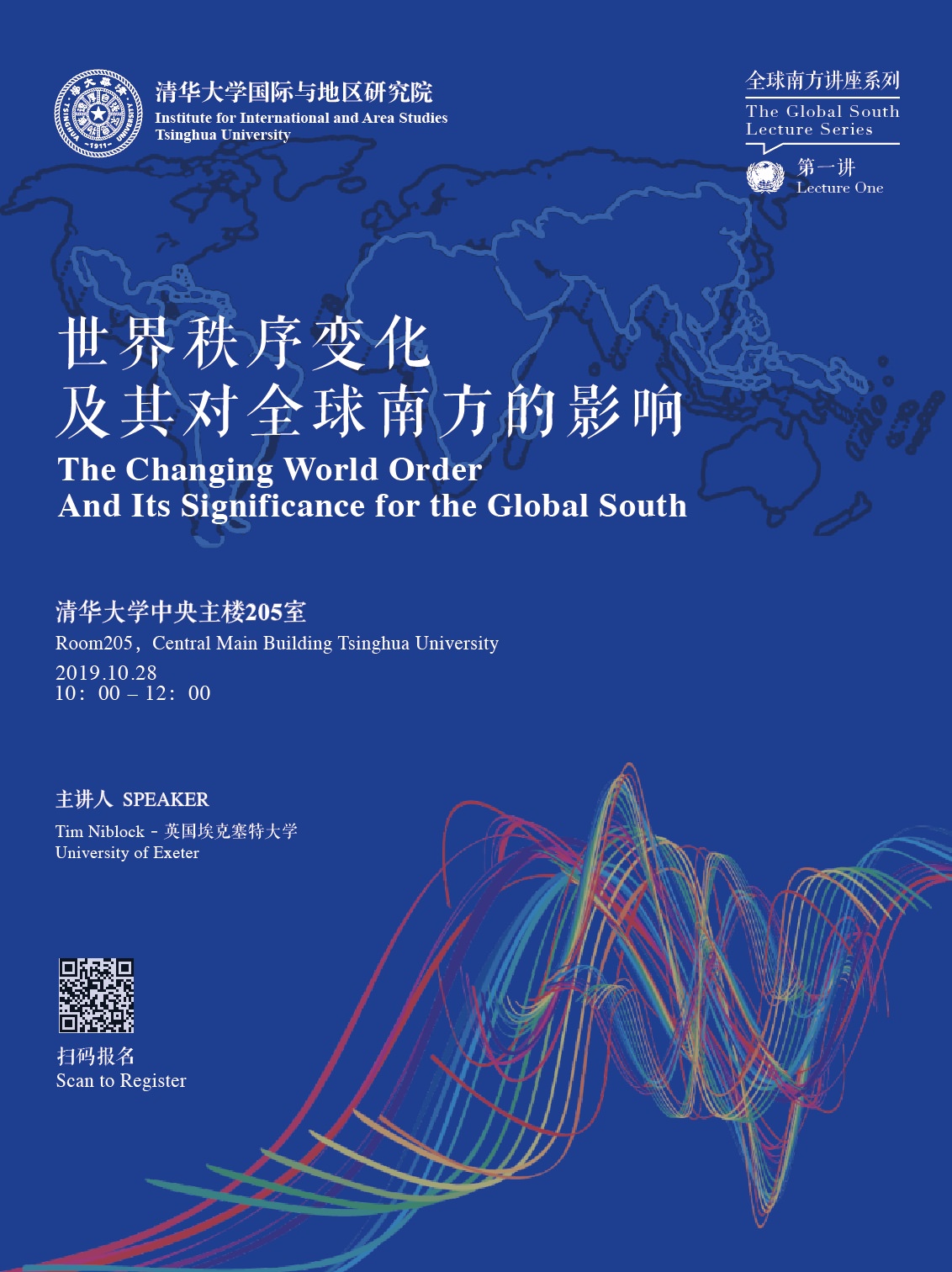 On October 28, 2019, Prof. Tim Niblock, Member of Faculty Council at the Institute of International and Area Studies (IIAS) of Tsinghua University and Professor Emeritus of the University of Exeter, brought the theme lecturer of “The Changing World Order and Its Significance for the Global South” to IIAS, which is the first session of the Global South Lecture Series in this semester.