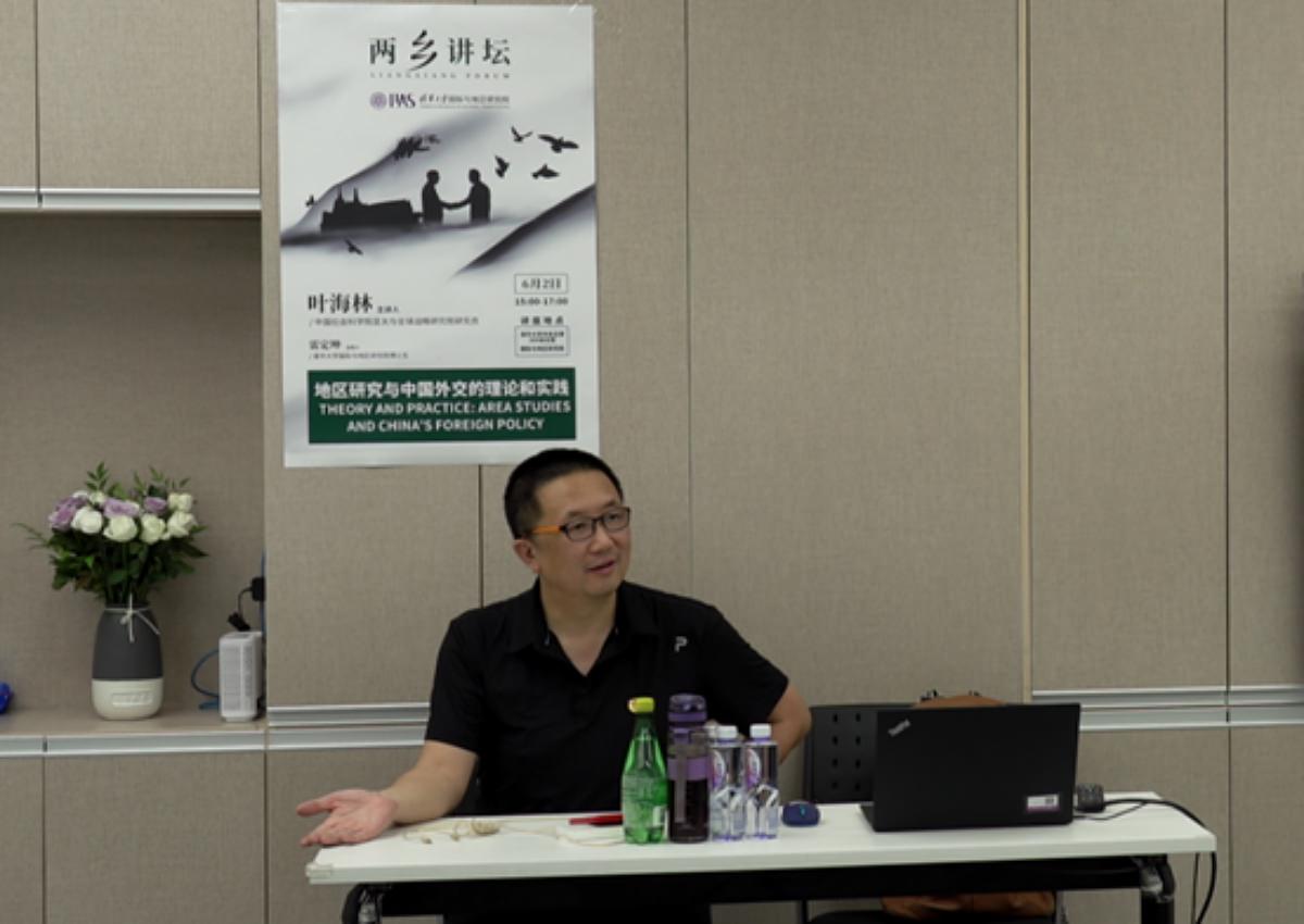 On the afternoon of June 2nd, 2021, the sixth session of Liangxiang Forum organized by the Institute for International and Area Studies, Tsinghua University (IIAS-THU) in Spring 2021 was held at Conference Room 205 of the Central Main Building, with the theme of “Theory and Practice: Area Studies and China’s Foreign Policy”. The lecture was presented by Ye Hailin, Associate Professor and Deputy Director-General at the National Institute of International Strategy, the Chinese Academy of Social Sciences (NIIS, CASS), and hosted by Lei Dingkun, a doctorate candidate at IIAS. Other doctorate candidates and research professors at IIAS as well as external participants attended the event.