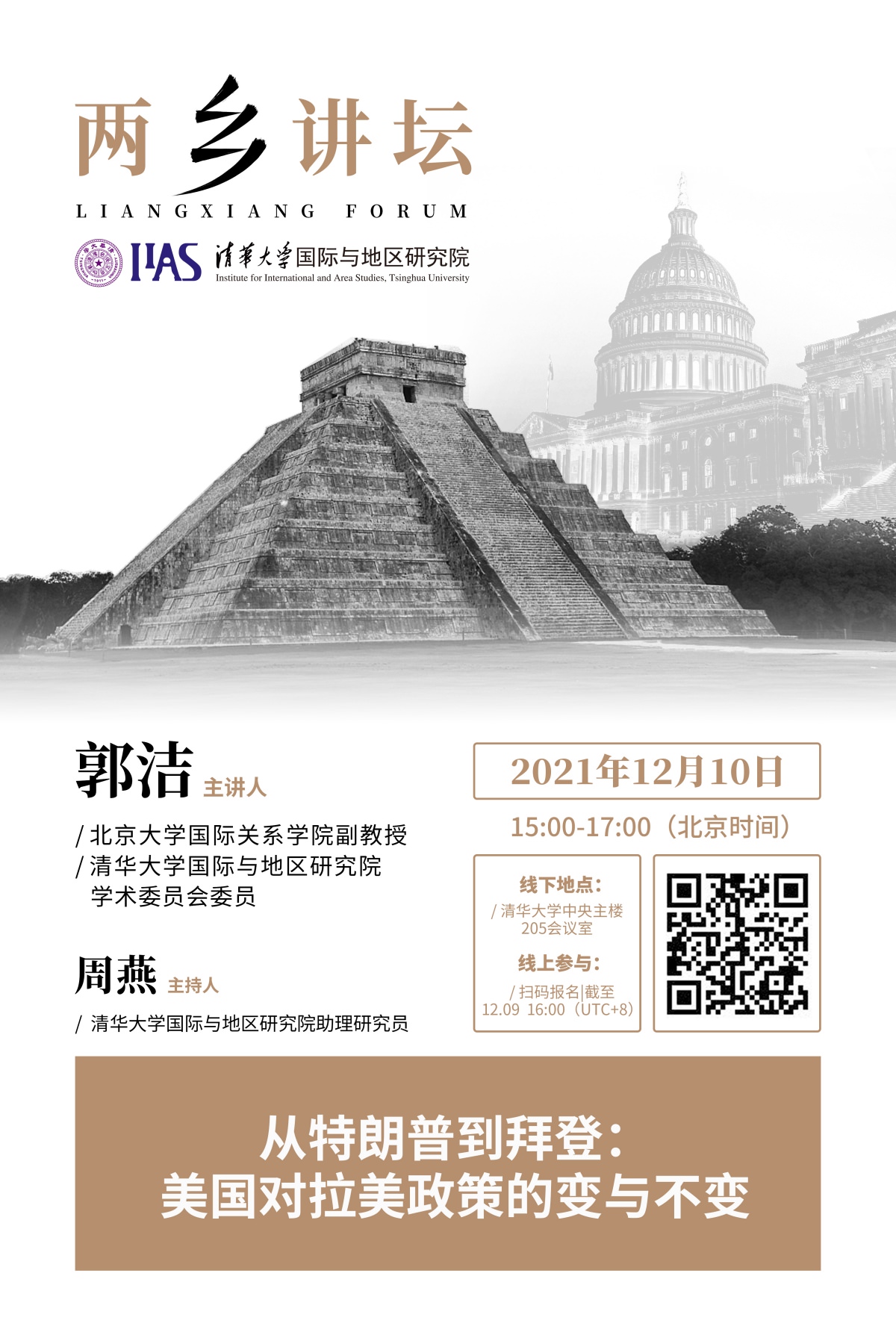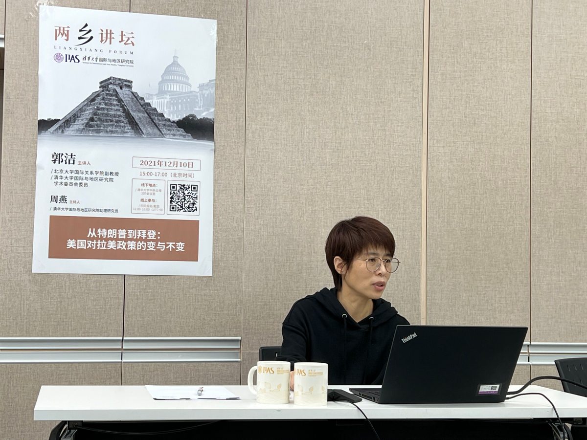 On December 10, 2021, the sixth lecture of “Liangxiang Forum” hosted by Institute for International and Area Studies of Tsinghua University of the autumn semester of 2021 was successfully held. This lecture is given by Guo Jie, associate professor in the Department of International Relations of Peking University. The theme of the lecture is “From Trump to Biden: The Changes and Consistencies in the U.S Policy towards Latin America”. Zhou Yan, assistant professor of the IIAS, presided over the lecture. Researchers of area studies, and doctoral students attended the lecture.