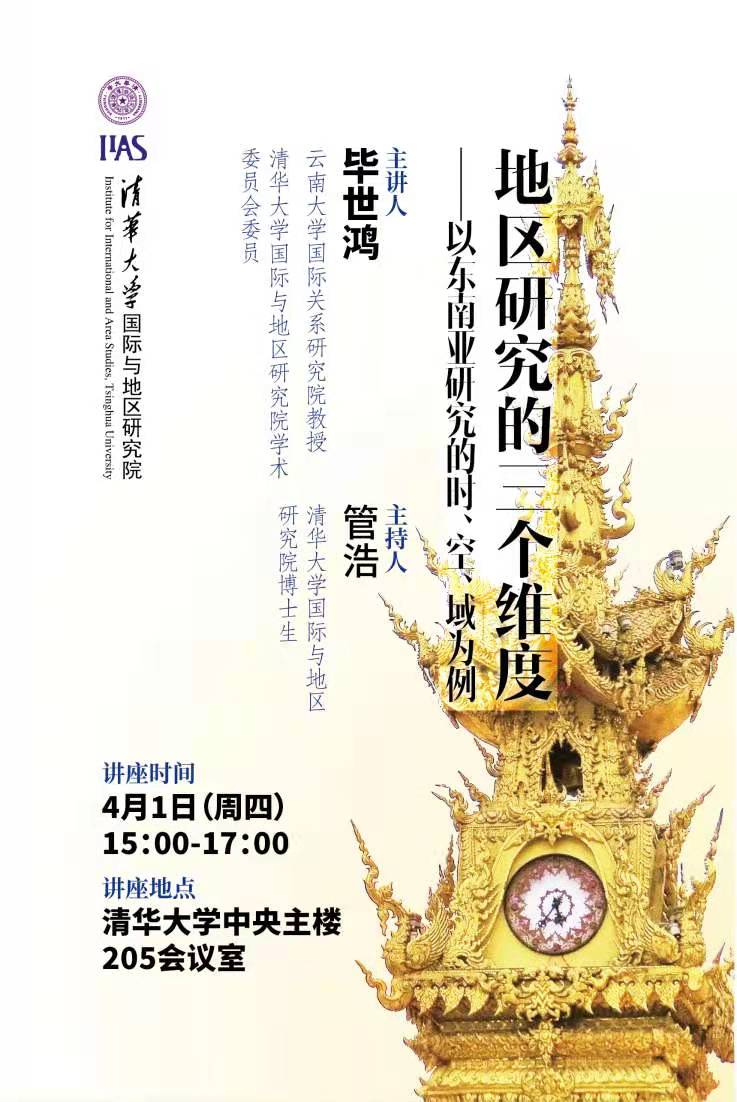 • 2021年4月1日下午,东南亚地区讲座第一讲在中央主楼205会议室召开,主题为地区研究的三个维度——以东南亚研究的时、空、域为例。本次讲座主讲人是云南大学国际关系研究院教授、av平台 学术委员会委员毕世鸿,av平台 博士生与部分外校师生参加了讲座。