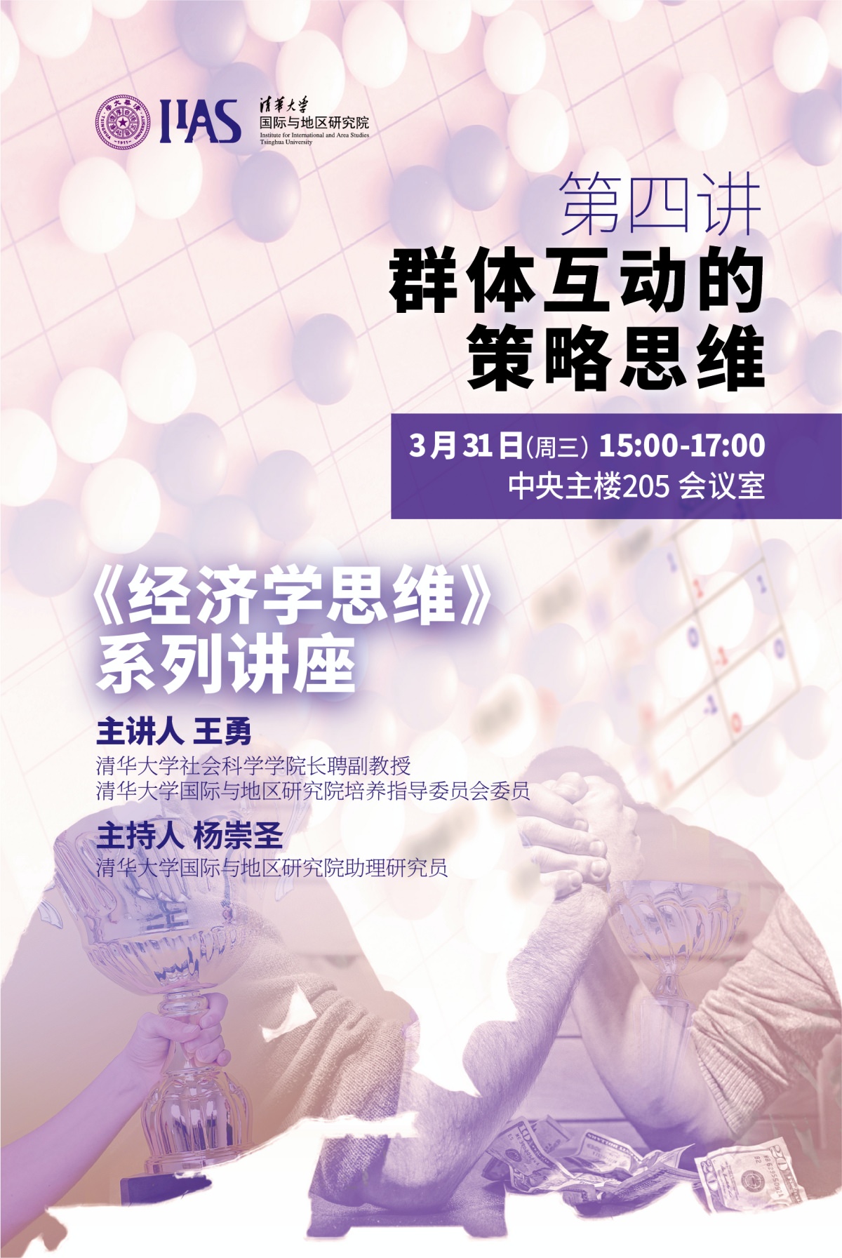 • 2021年3月31日下午,《经济学思维》系列讲座第四讲在中央主楼205会议室召开,主题为群体互动的策略思维。本次讲座主讲人是av平台 社科学院经济学研究所长聘副教授王勇,av平台 博士生参加。