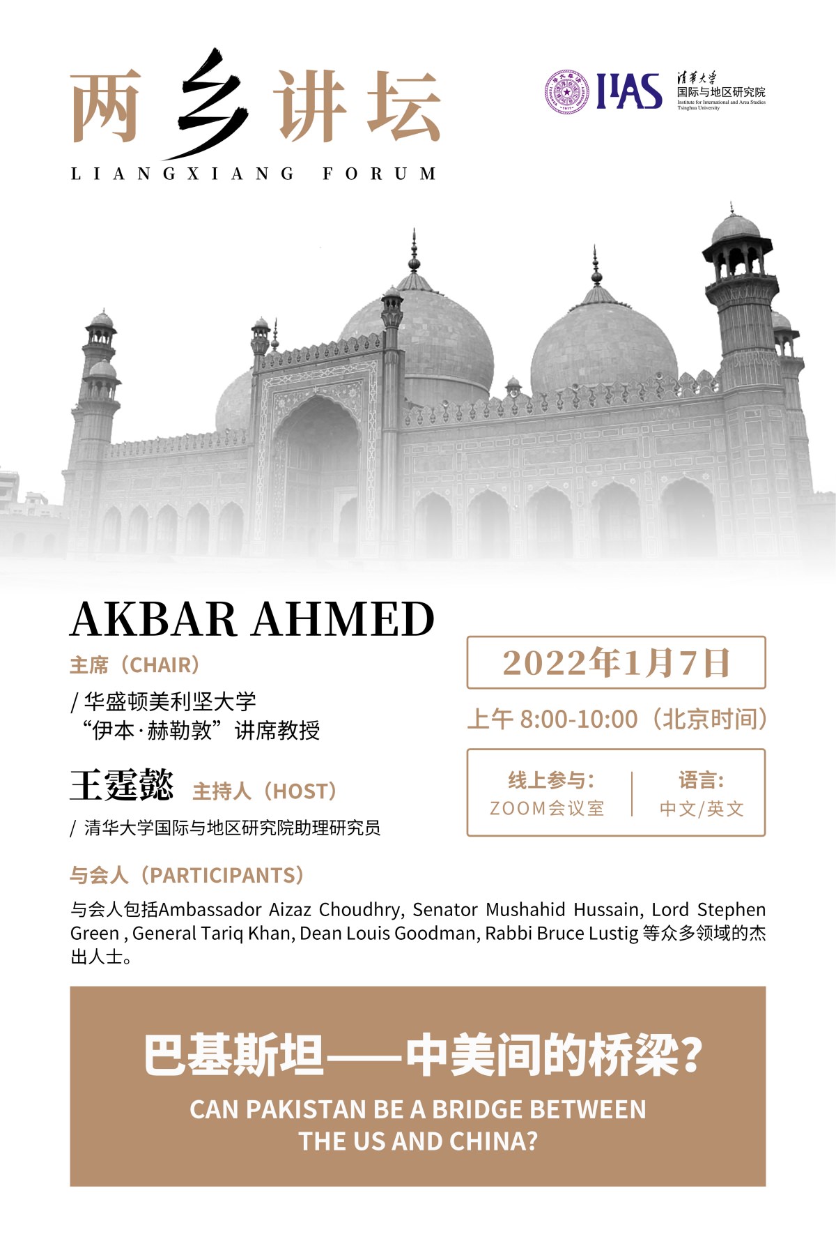 2021年秋季学期“两乡讲坛”第七讲通过线上形式召开,论坛主题为“巴基斯坦——中美间的桥梁?”。本场论坛由华盛顿美利坚大学“伊本·赫勒敦”讲席教授、巴基斯坦前驻英大使Akbar Ahmed担任主席,av平台
