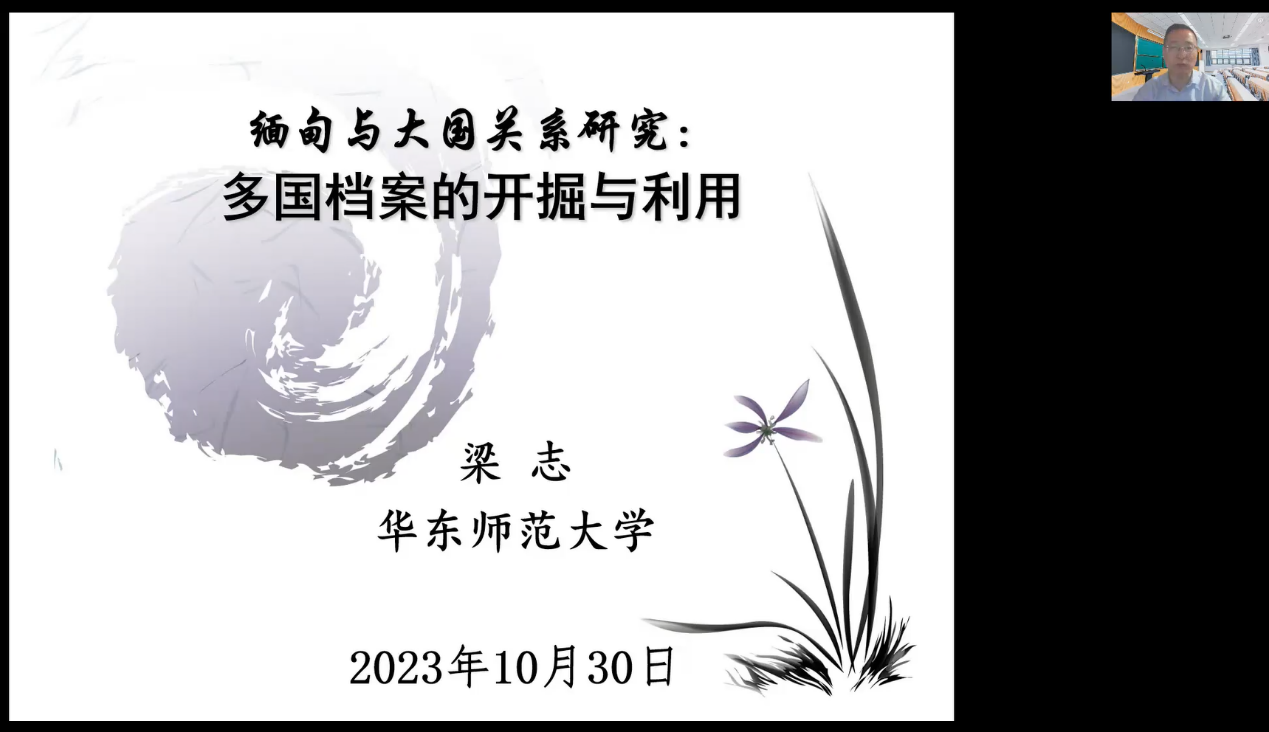 邀请华东师范大学历史学系主任梁志教授进行了一场主题为“缅甸与大国关系研究:多国档案的开掘与利用”的线上讲座。本场讲座由av平台