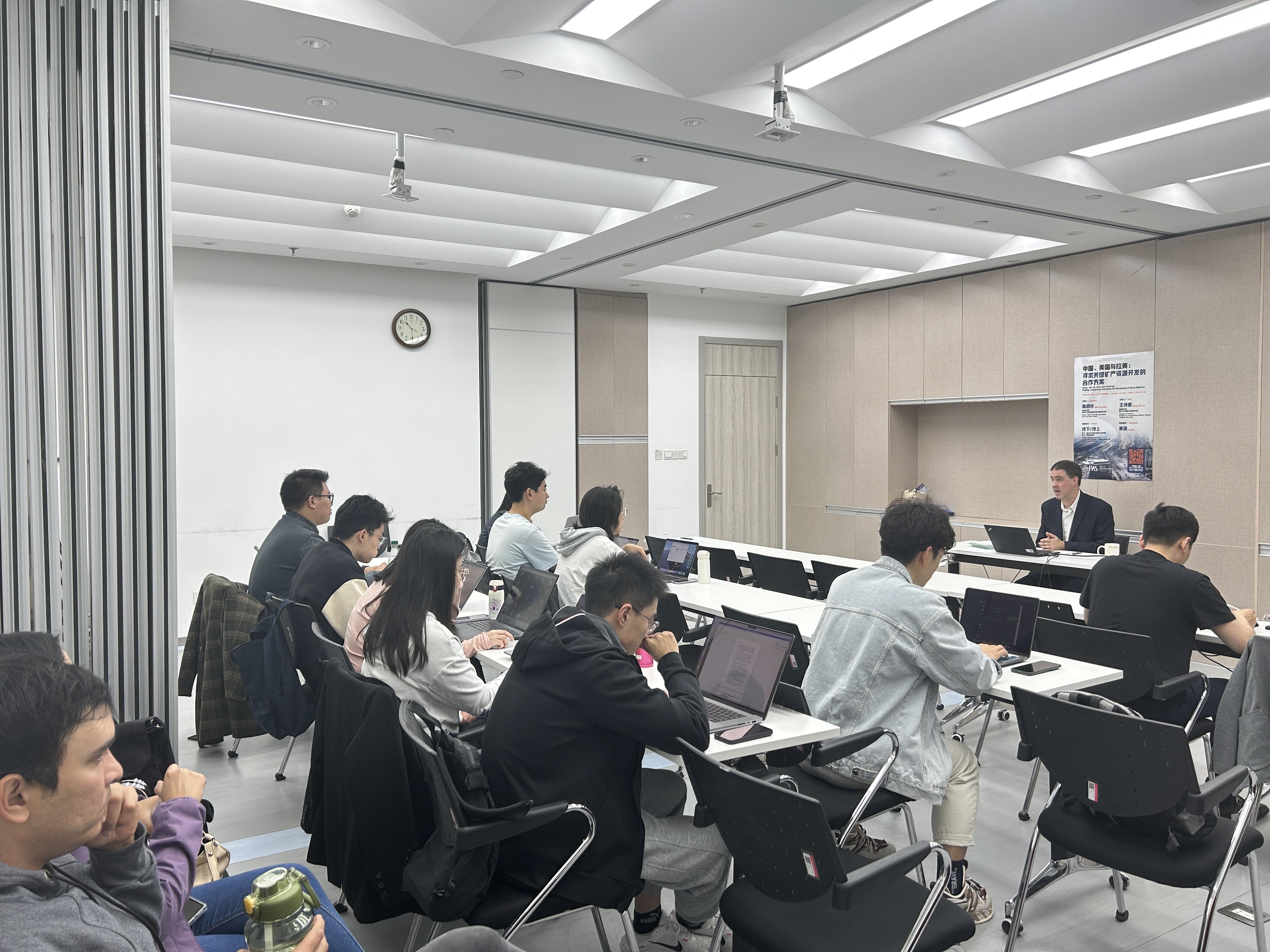 • 2023年10月18日上午,av平台 在中央主楼205室举办了“拉美政治研究前沿问题”系列讲座的第二讲,题为“中国、美国与拉美:寻求关键矿产资源开发的合作方案”。本场讲座由耶鲁大学法学院高级研究员陈懋修(Matt Ferchen)博士担任主讲,av平台 助理研究员王诗傲主持,线上线下近80名国内外高校师生和专业人士参加。