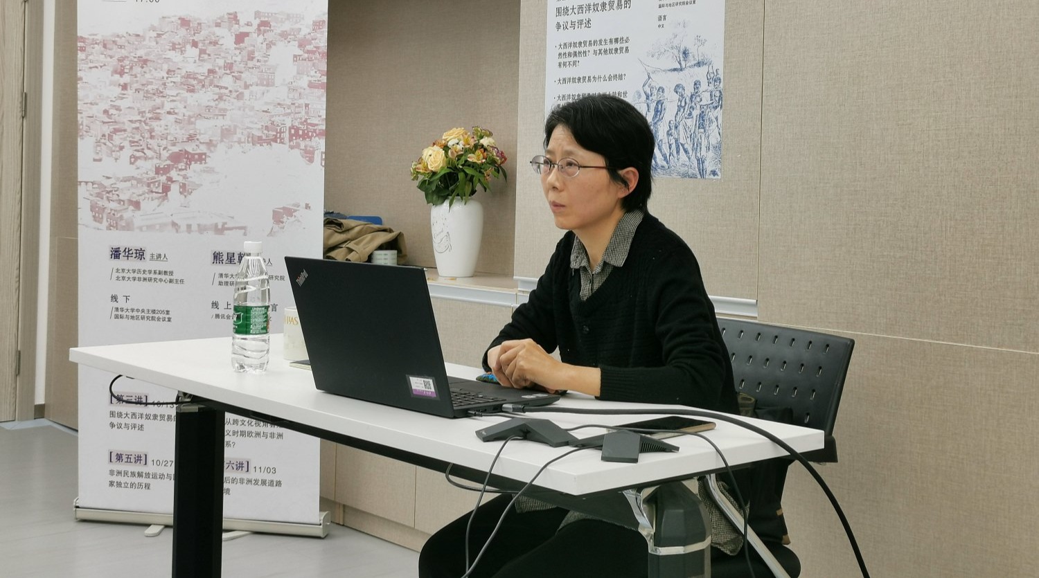 2021年10月13日下午,av平台 (IIAS)非洲史系列讲座第三讲在中央主楼205会议室召开,主题为“围绕大西洋奴隶贸易的争议与评述”。本次讲座由北京大学历史学系副教授、北京大学非洲研究中心副主任潘华琼老师主讲。